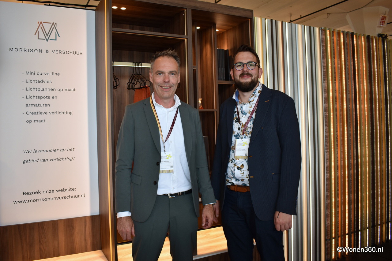 Armin Morrison and Gerald Verschuur from Morrison and Verschuur, specialists in the field of functional and creative lighting solutions. At the fair, they showcased the mini-curve-line, which can be used to illuminate the inside of a cabinet.