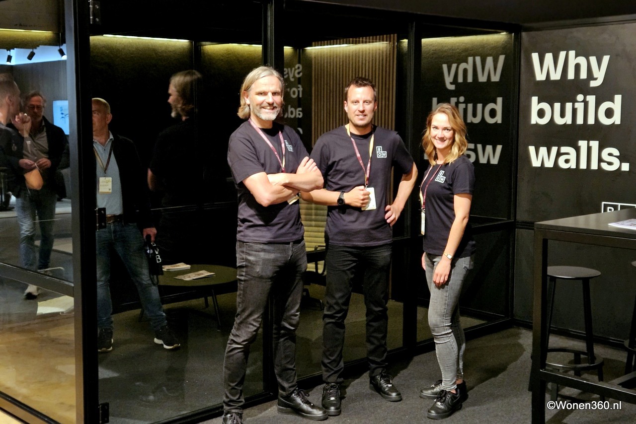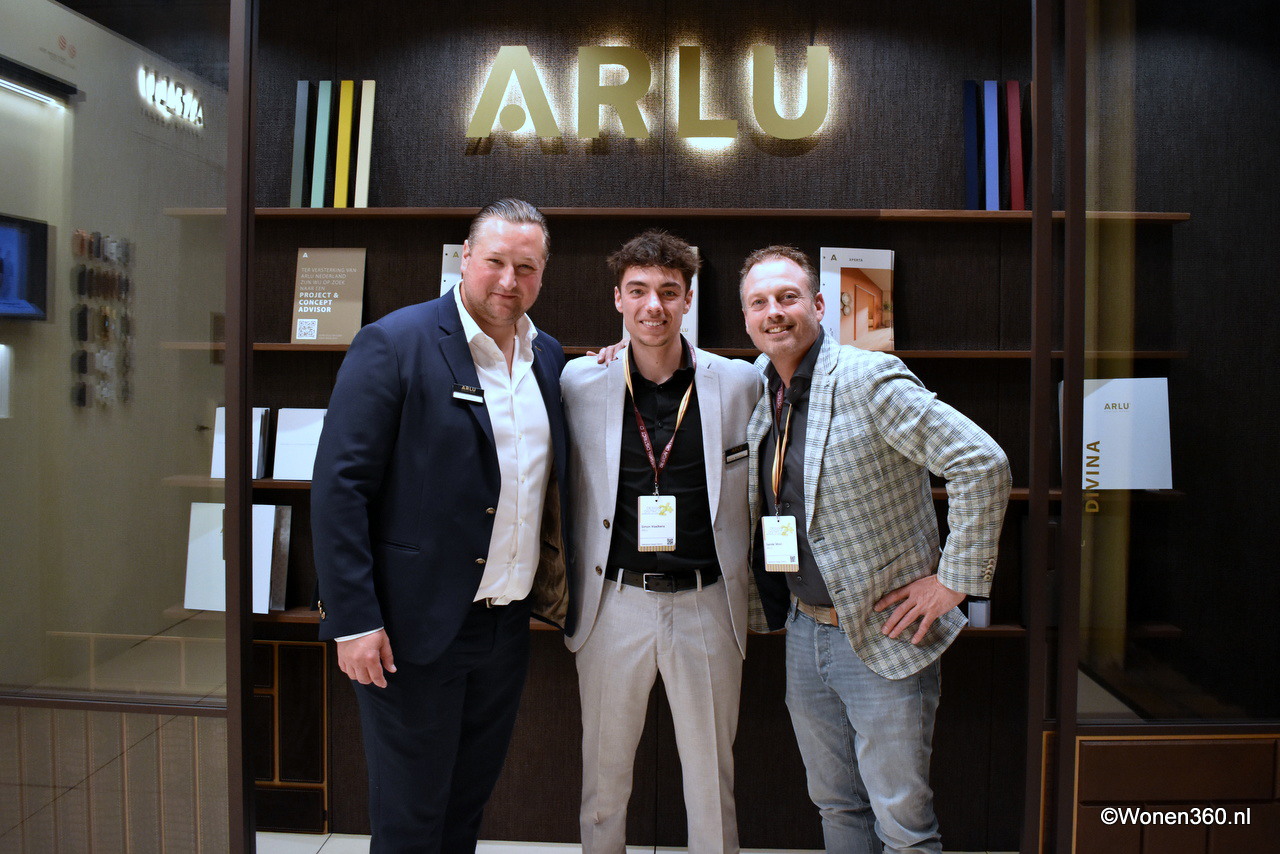 Jelle Vanackere, Simon Waelkens, and Sander Mooi from ARLU, which showcased the latest interior and exterior solutions. Such as Divina, glass walls that easily divide spaces without losing light or openness.