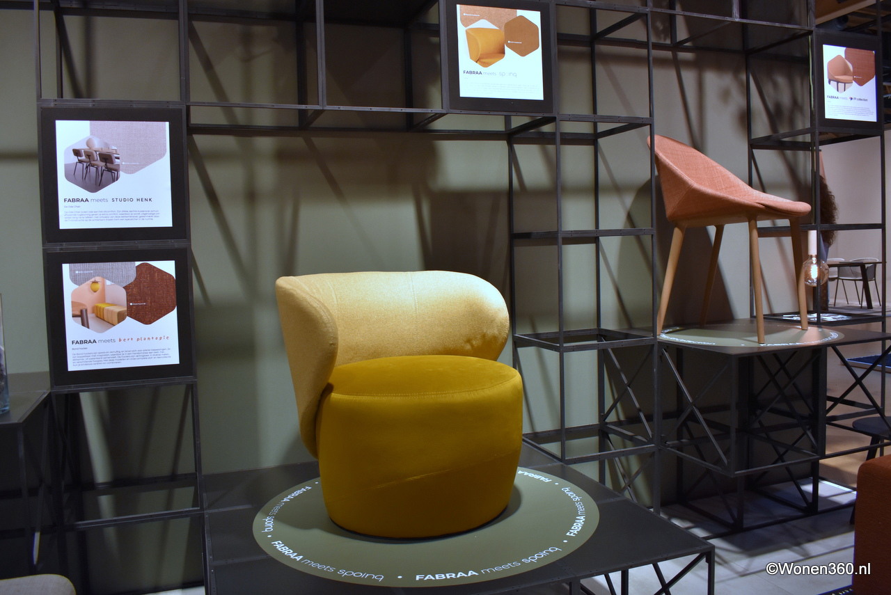 A look at the FABRAA booth, which showcased collaborations with various furniture manufacturers. (Yellow) Sofie is a round design armchair that feels at home everywhere. Due to its round shapes, it occupies a modest space, perfect for, for example, a hotel room or an entrance.