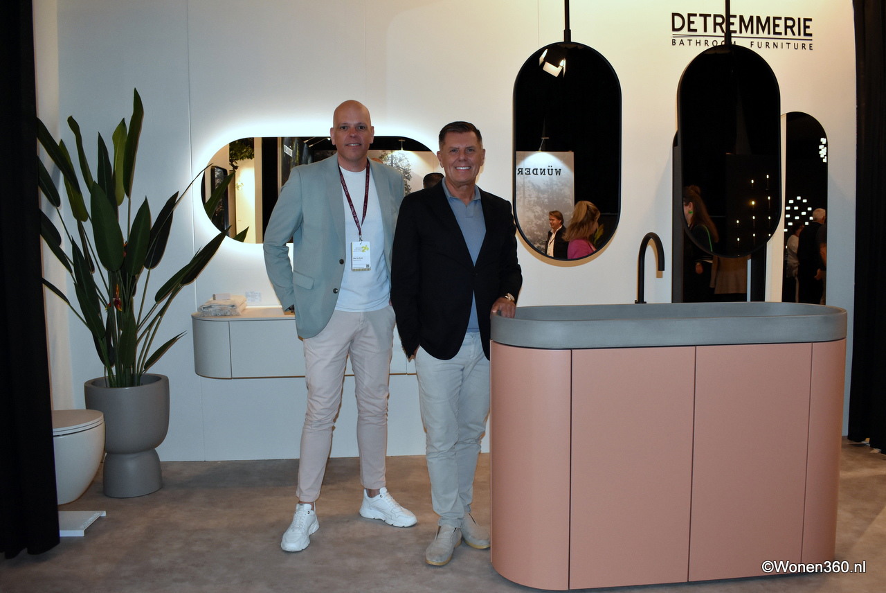Alex de Rooij and manager Koen Ducatteeuw of Detremmerie with the new No Limit Oval collection - in the freestanding variant. The trend color Peach Fuzz completes it all.