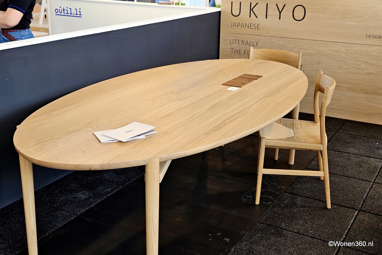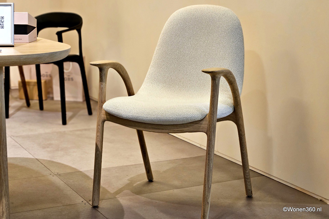 Sarah Trenité from Arp Design showed a part of her Optical collection. This collection includes Loupe: a straight table, Eye: an oval table, Pupil: a round table, and finally: the Loupe chair. This chair was recently put into production and was shown in, among other materials, walnut and oak.