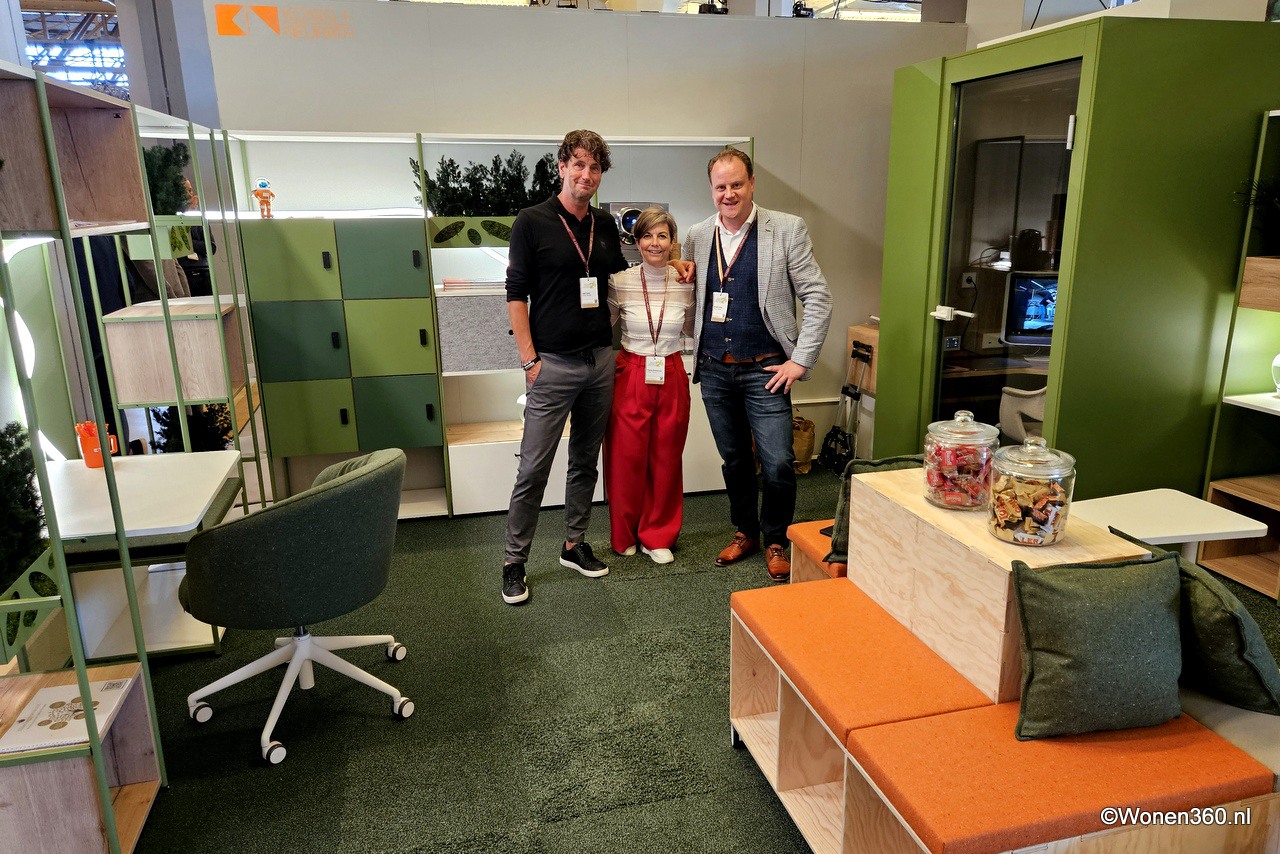 Kees Conijn, Yvonne Brekelmans, and Ronald de Man from König + Neurath. At the fair, among other things, a new cabinet and meeting system was exhibited.