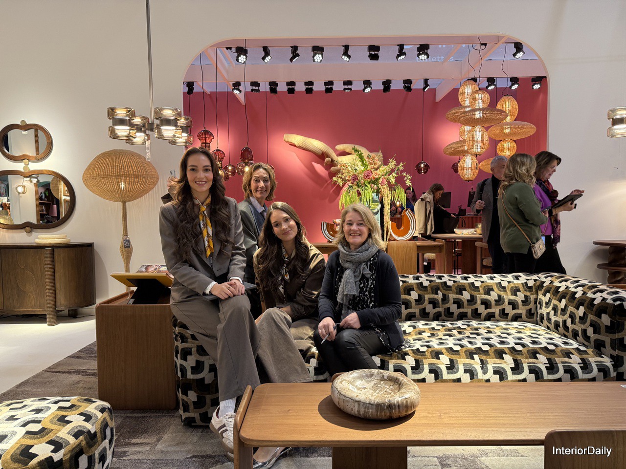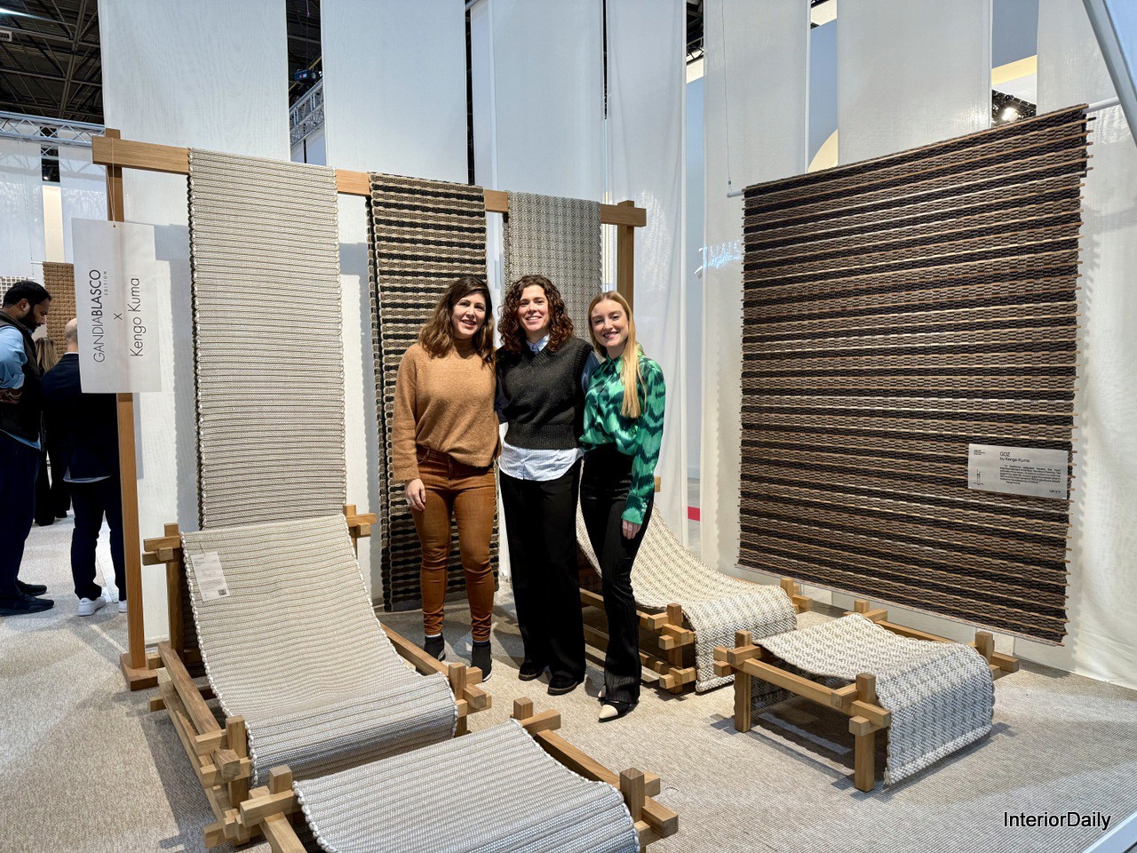 The Gandia Blasco team with the HOS collection, The rug as an enveloping furniture piece.Left to right: Alejandra, Christina, and Irene.