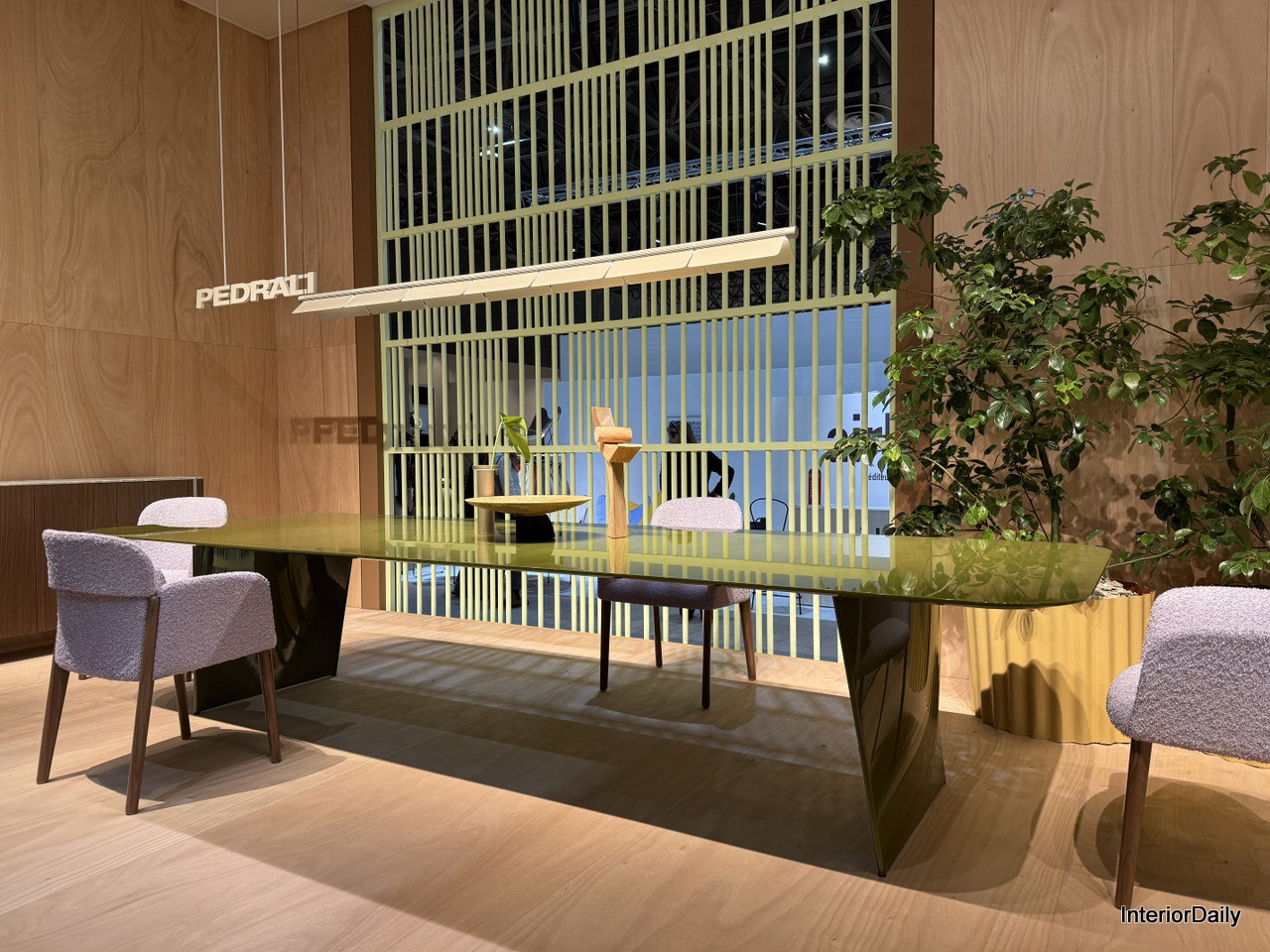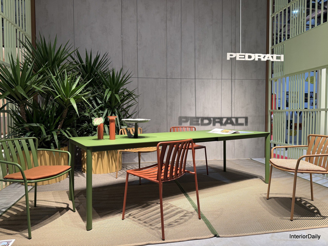 Pedrali returned as an exhibitor this year. This photo showcases some of their latest novelties, including the ALU aluminum table.