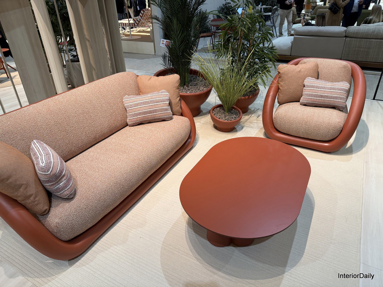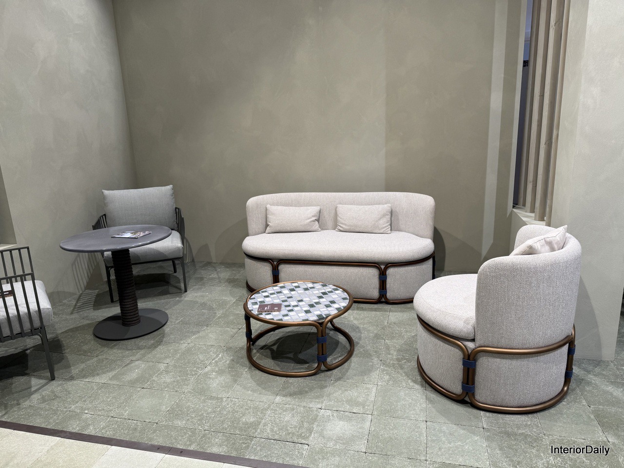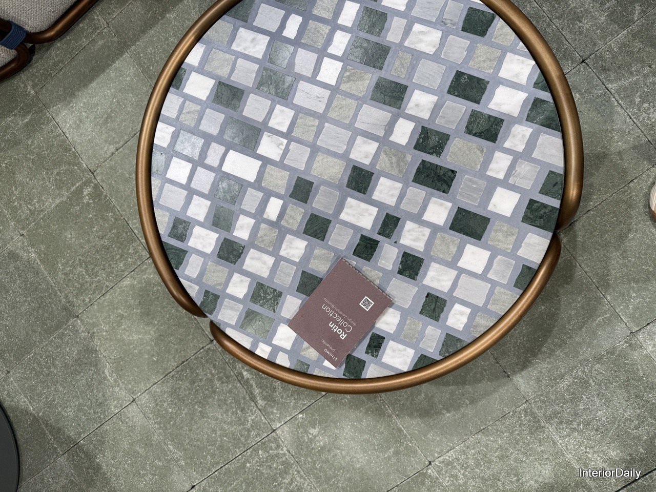 We also saw many coffee table tops made of inlaid stone at the fair. This is Ethimo’s ROTIN collection.