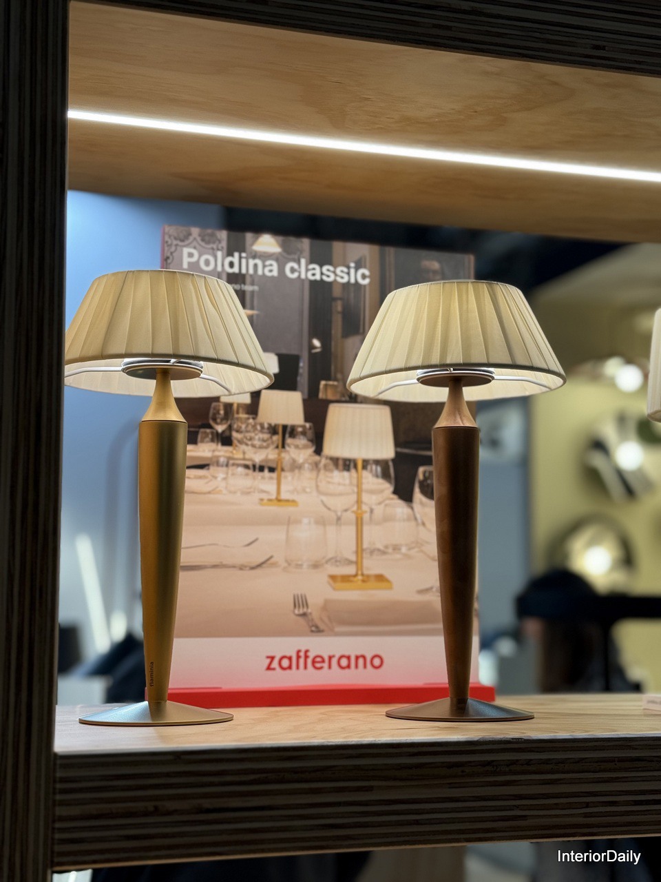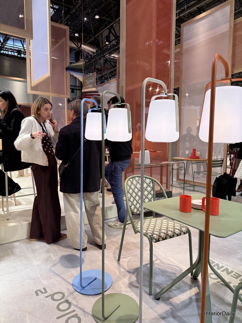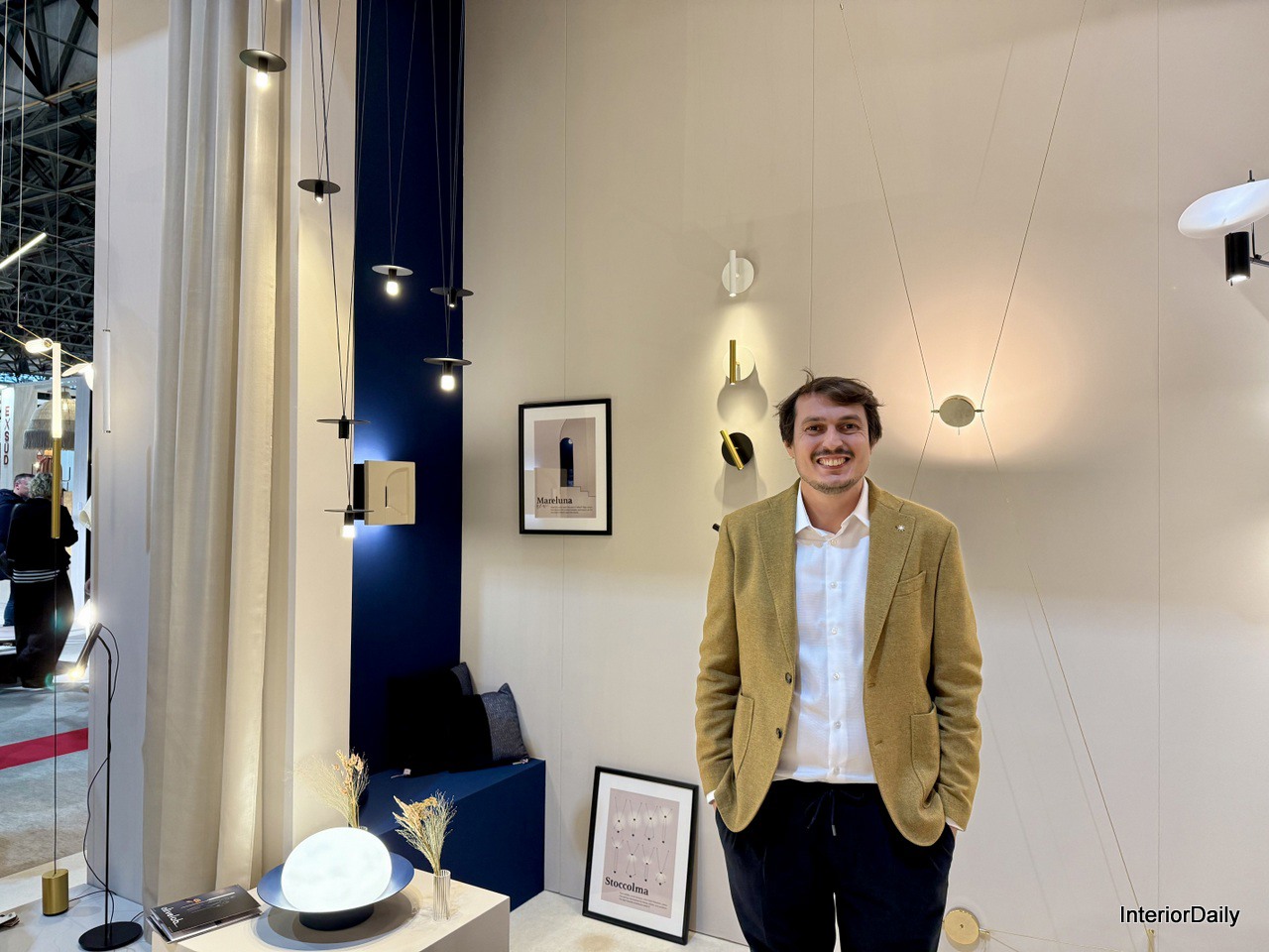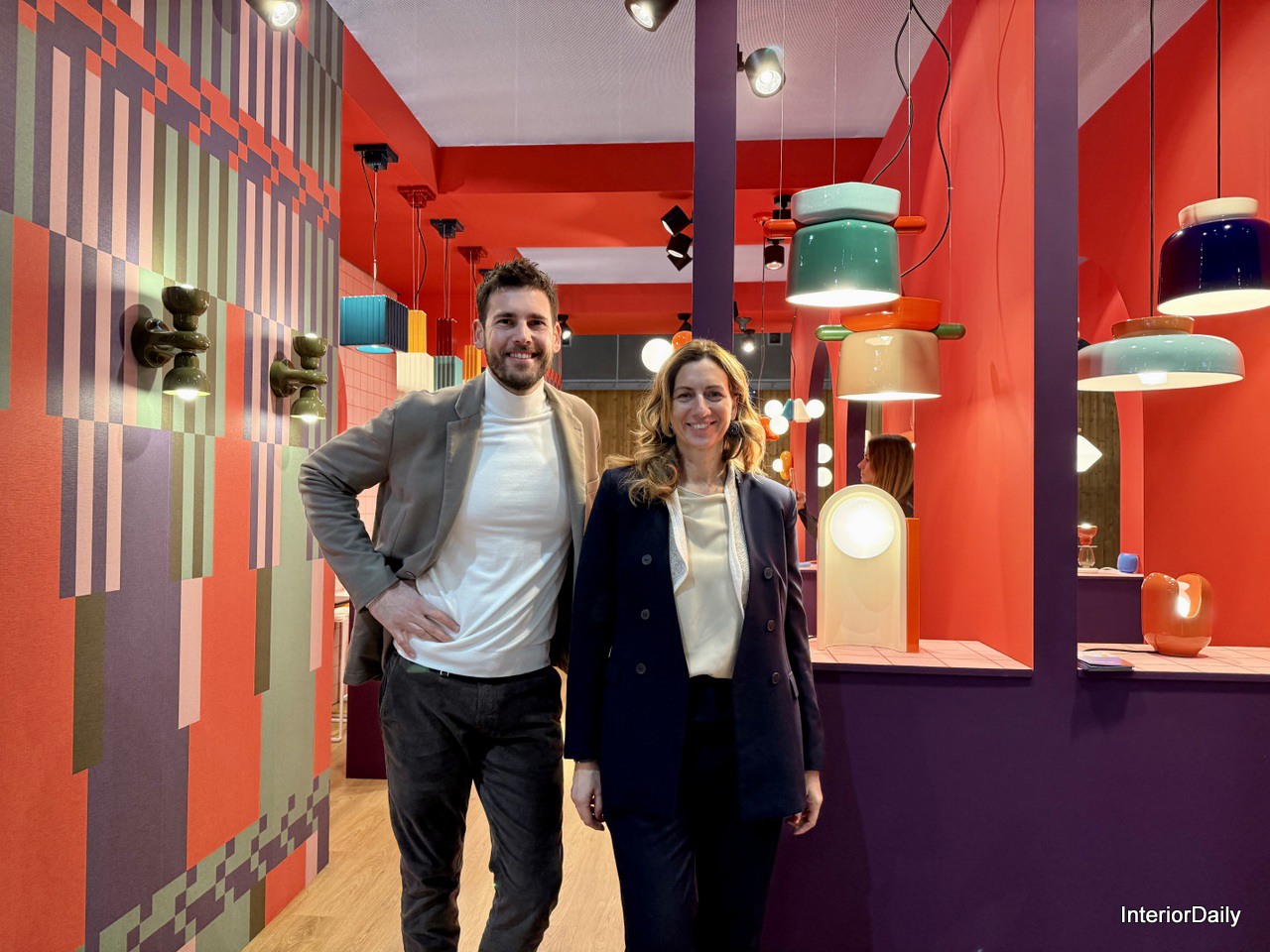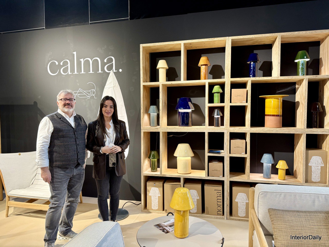 Thomas and Ariadna from Calma Outdoor by the wall full of new lighting designs. New colors and sizes were presented.
