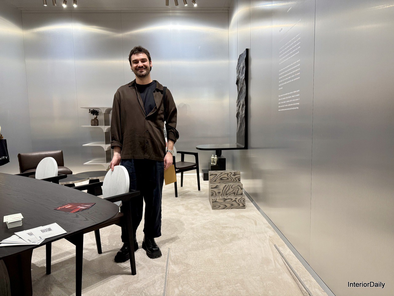 Designer Cezar Moldovan with his Luna table designed for Arbore.