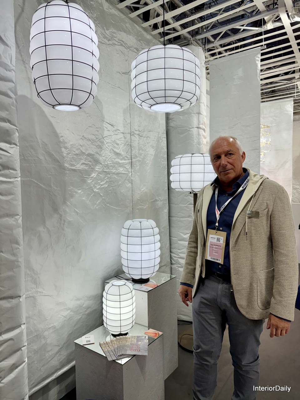 Rudy Marinotto from Siru Lighting with the mouth-blown glass lighting from the Italian company.