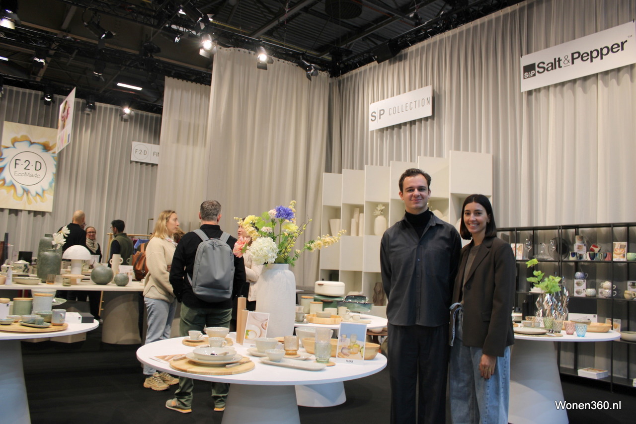 Jeroen Van den Heuvel and Hannah Verboven present the Salt & Pepper collection at the Fine Dining & Living stand.