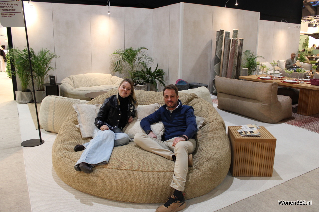 Michal Wielosik and Axelle Harinck took a seat in the new outdoor sofa with a new fabric.