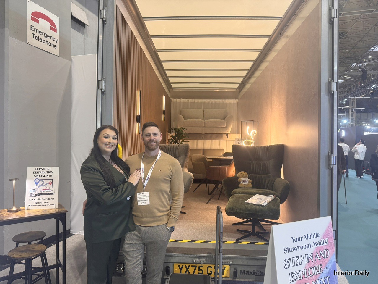 A Mobile Showroom that can be rented by furniture companies across the UK. Presented by the owners of the company. Jennifer Evans (left) and Chris (right) Evans.
