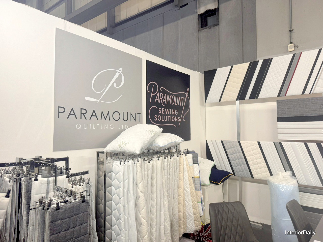 Racks and walls used to show new mattress/ cushion protectors and covers by Paramount Quilting.