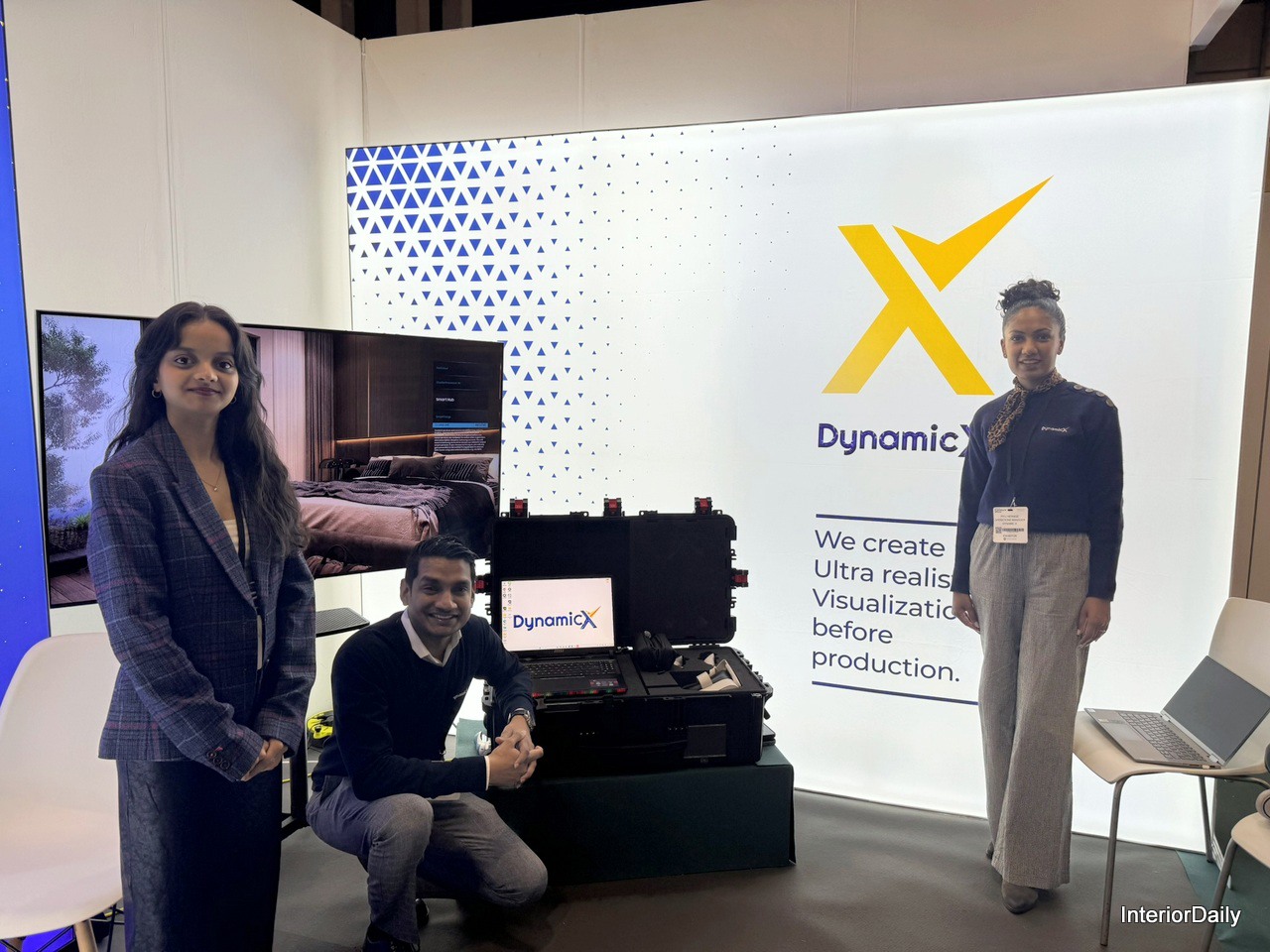 Dynamic X delivering a virtual experience that showcases the future of project visualisation in the furniture landscape.Left to right: Shreya Gupta, Mahesh Dhilhan, Piyumini Hewage.