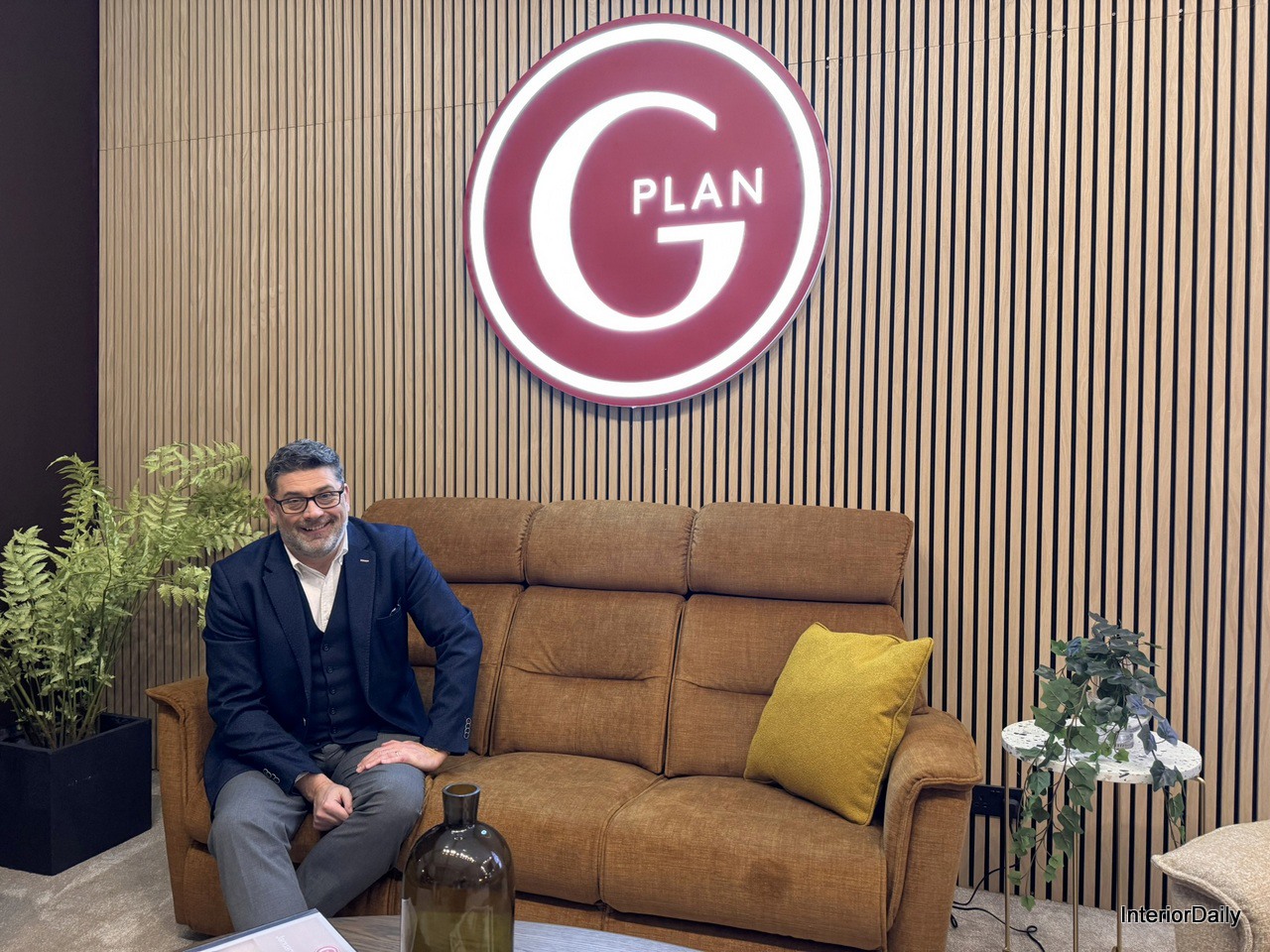 Richard Goode proudly presenting the newly rebranded G Plan logo.