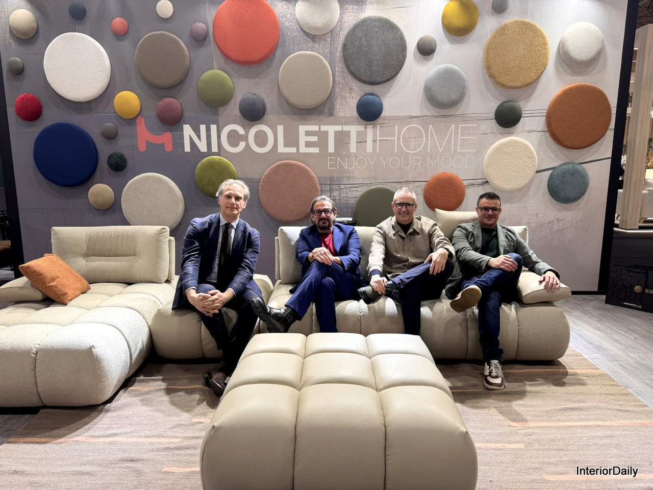 From left to right: Gianni Tucci (Managing Director), Eustachio Nicoletti (CEO), Mimmo Scarola (Senior Area Manager), and Domenico Salluce (Junior Area Manager). One of the few Italian companies attending the January Furniture Show.