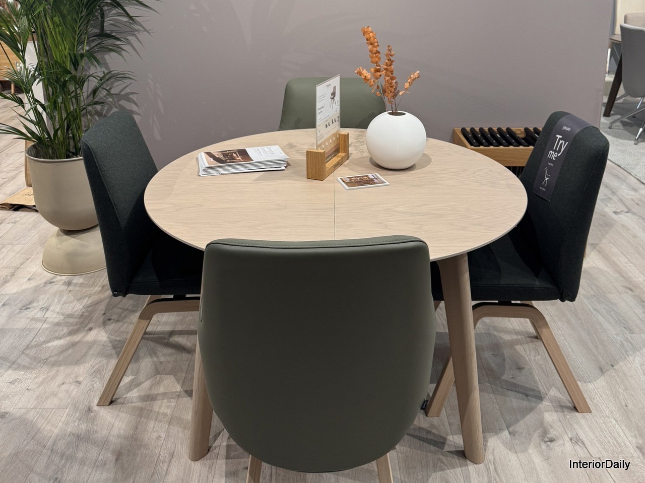The newest dining chair model takes center stage as the main attraction at Skovby’s stand.