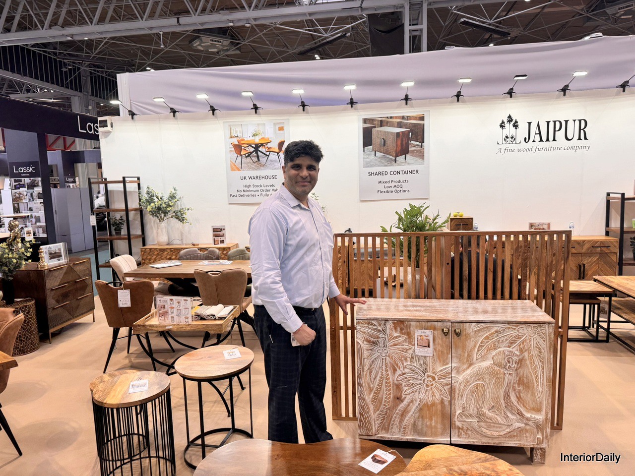 Jonathan Sullivan, Customer Service Director, with his colleague, sharing insights at the stand on why JBS 2-man Delivery is a trusted name in the furniture industry.