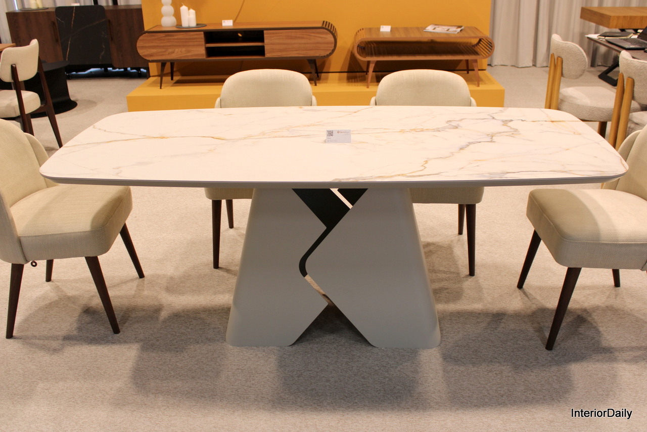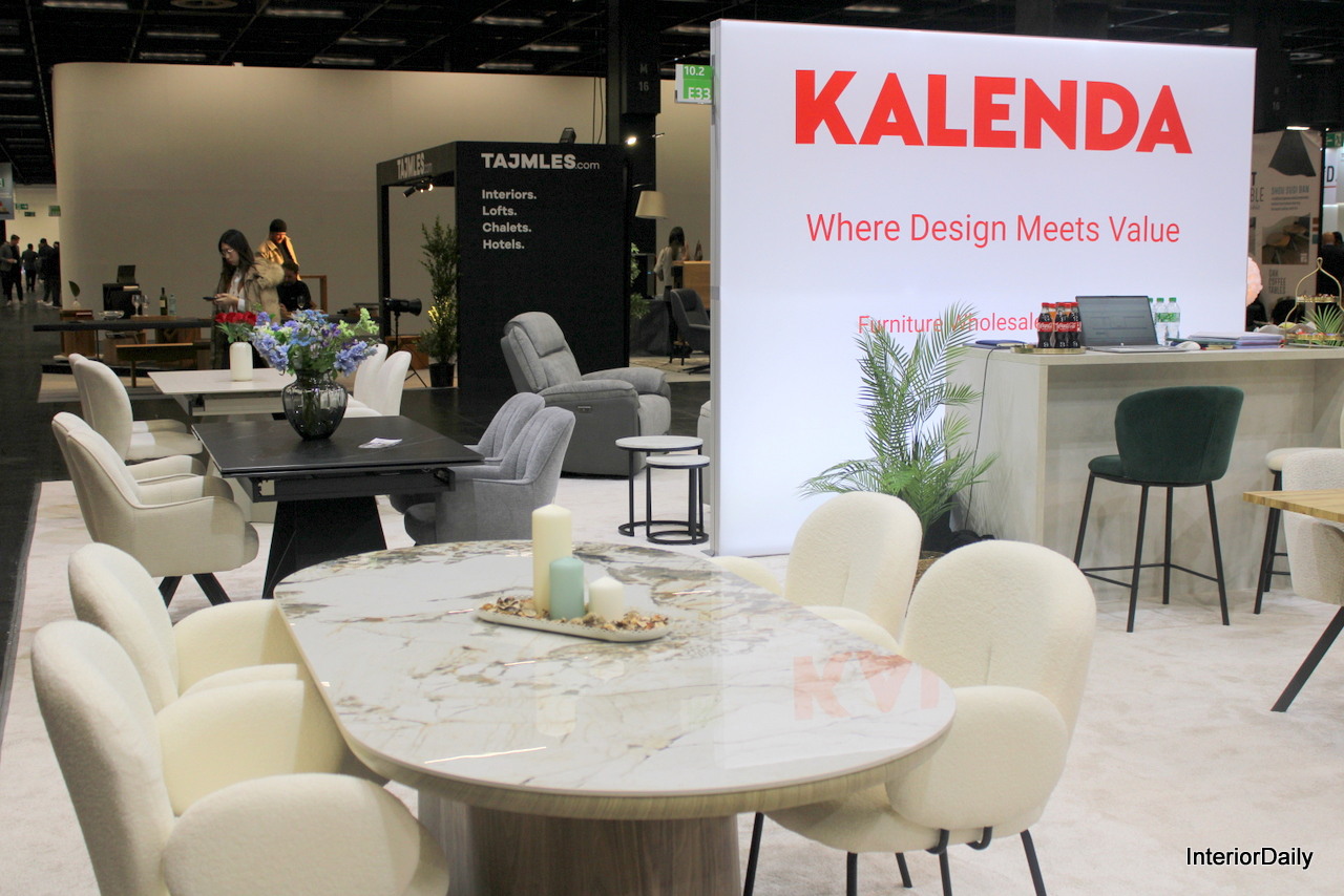 Kalenda made its imm cologne debut, featuring the Cortina chair in wool fabric, the Gordon table with a ceramic top, and the Pandora tabletop color from the 2026 collection.