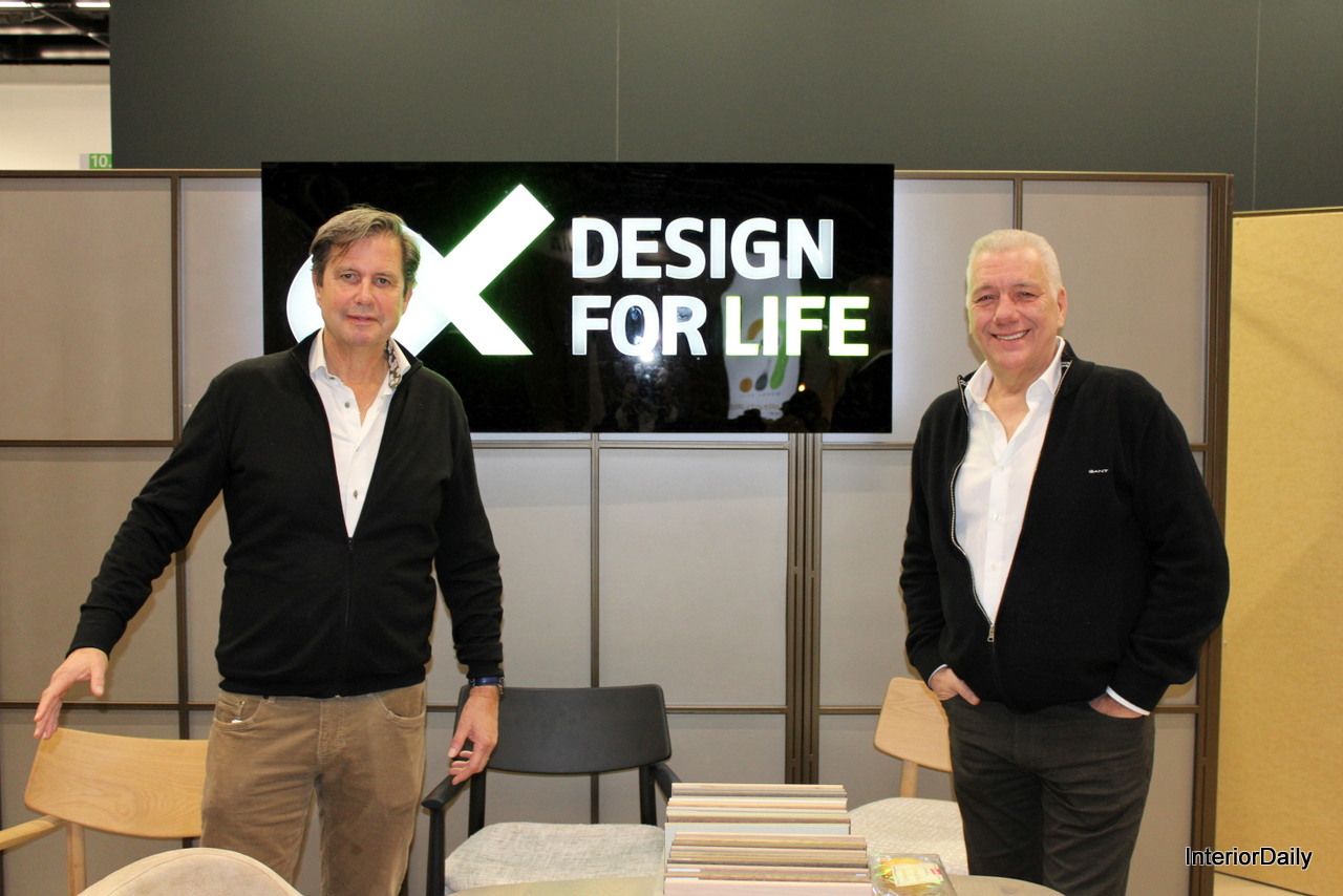 Luuk (left) and Marcel (right) Zijlstra presented the newest collection, featuring the 3D Travertin ceramic table, which captured the authentic look and feel of real travertin, and the Armchair Flex, with a flexible, spring-supported backrest integrated into the seat.