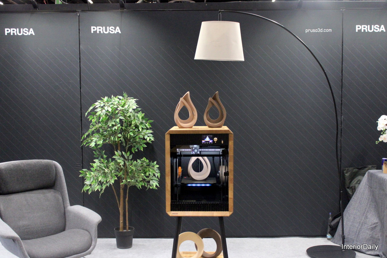 Prusa showcased its 3D printers designed for architects and designers, featuring a limited edition model crafted with real oak for enhanced aesthetic appeal.