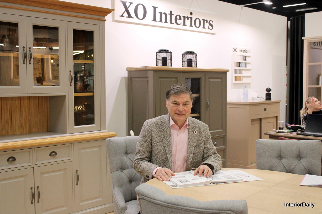 Peter Peovici posed with the new chic Oak Collection at the XO Interiors booth.