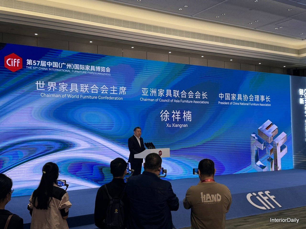 Xu Xiangan, Chairman of the World Furniture Confederation, Chairman of the Council of Asia Furniture Associations, and President of the China National Furniture Association, speaking during the opening ceremony.