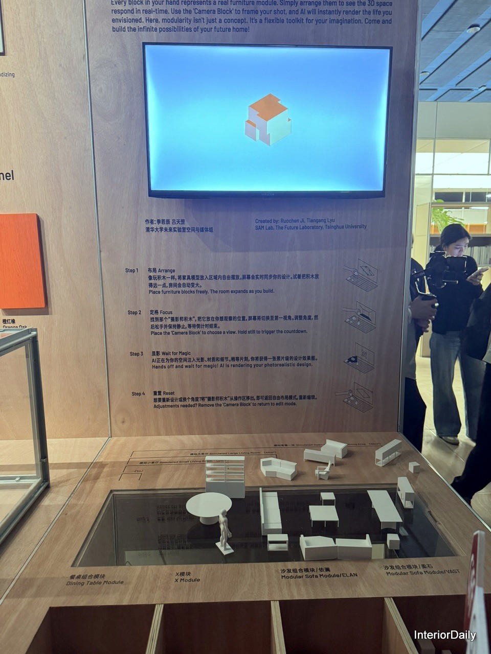 An engaging display at Camerich, where miniatures on the table could be arranged in any configuration and then transformed into a 3D visualized image on the screen using AI.