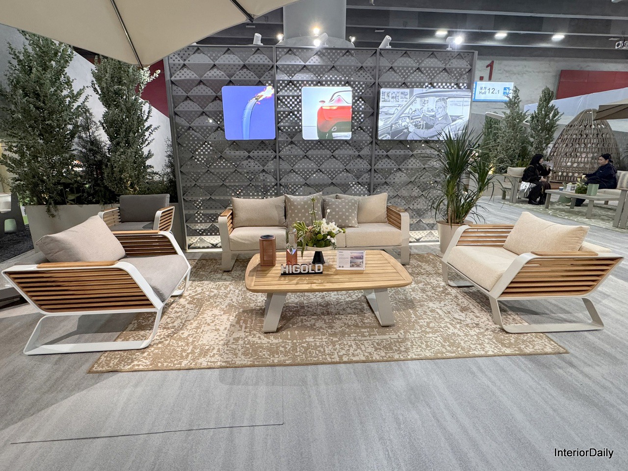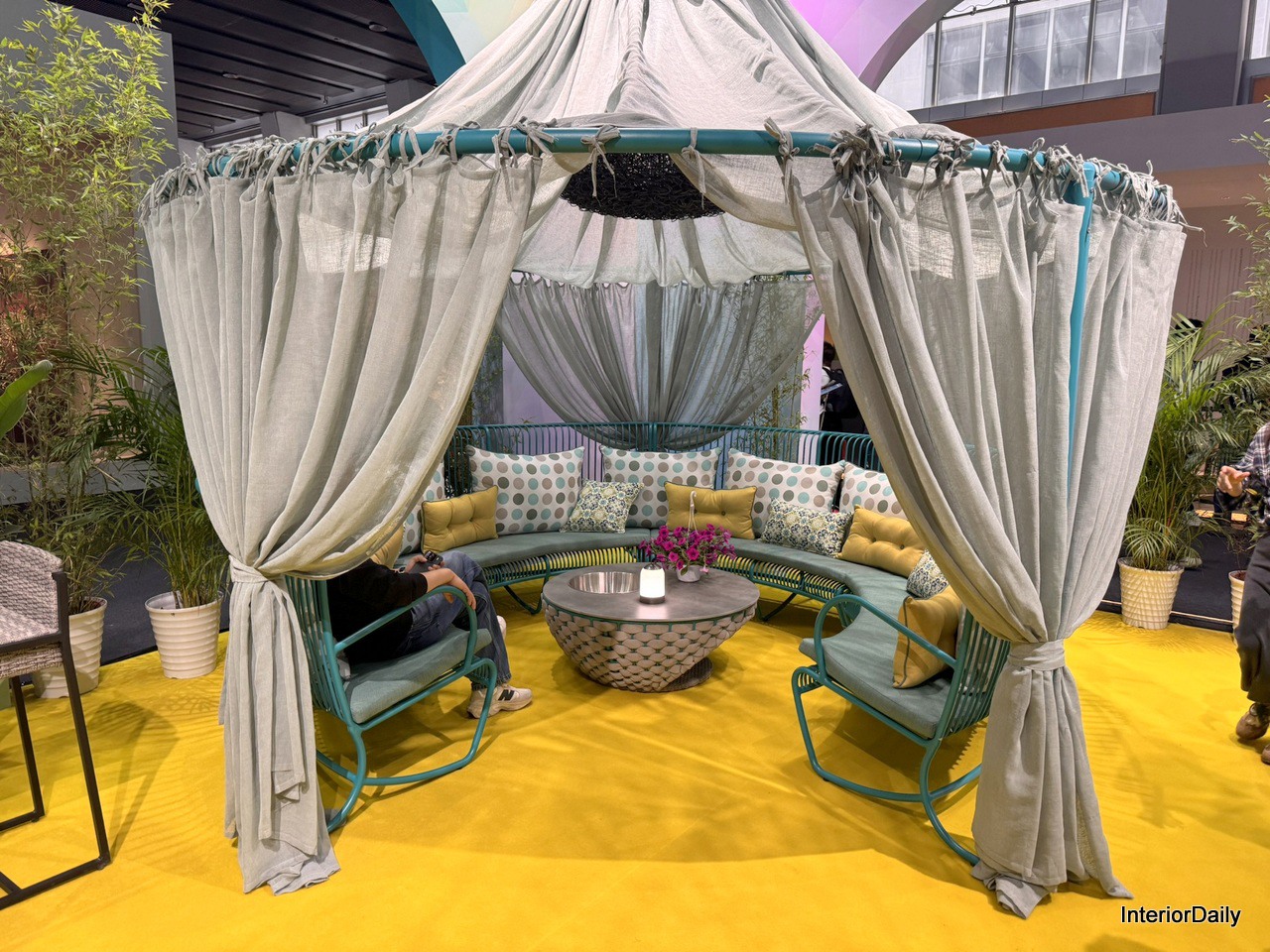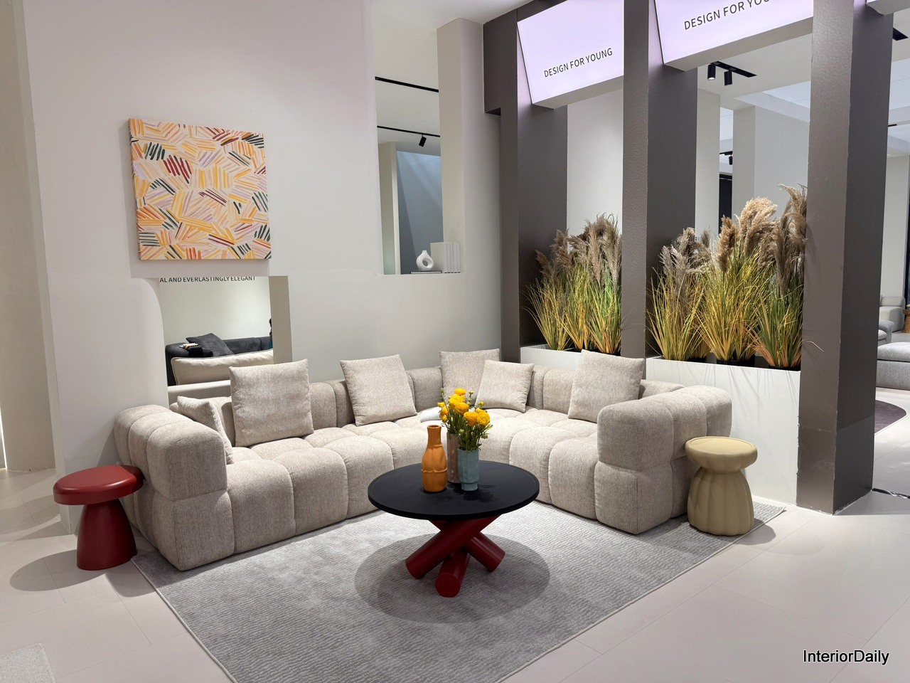 Steel-Land’s flagship modular couch, displayed right at the entrance of their booth.