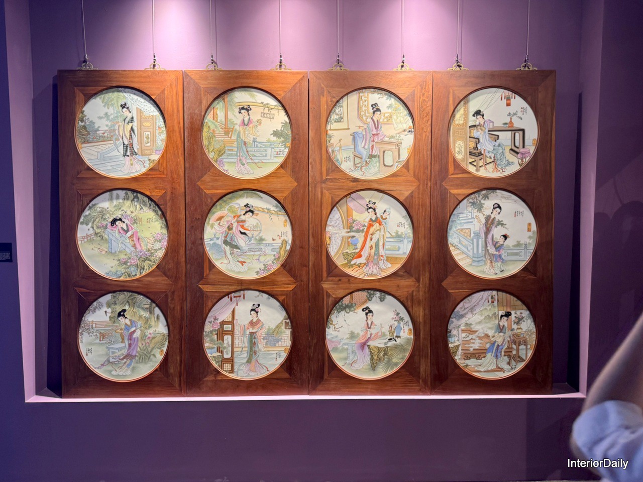 Traditional wall decoration featuring hand-drawn designs of Chinese women.