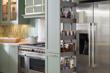 Beckhams’ kitchen demonstrates how vertical cabinets blend style with function